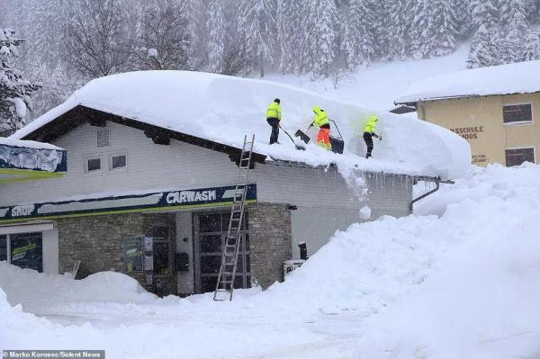 In order to prevent the snow from crushing the roof, many families had to climb to the top in the cold to clean up by themselves.
